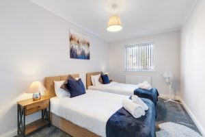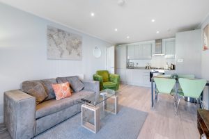 Two Bedroom brand new penthouse apartment located 5 minutes from High Wycombe Town Centre, The property comes furnished to a high standard for a short or long-term stay. offering one super king-sized bed and two single beds with the option to also turn into a super king-sized bed, an Open plan Lounge that offers an L shape sofa along with an armchair a 50″ Smart TV and super fast broadband, a fully equipped Kitchen & Dining Area which comprises of a four-seater dining table and everything you need to cook a full meal or prepare a small snack, The bedrooms have plenty of storage, a double wardrobe, bedside tables, if you are looking for a short or a long term stay near to High Wycombe town centre then please look no further and book today. Located conveniently to the M40 for easy access into London or the surrounding area’s.
