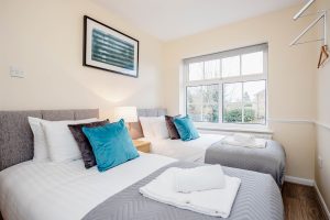 ➝ Master Bedroom has a King Size Zip and link with built in Wardrobes and en suite Shower and side tables. 2nd Bedroom has a King Size Zip and link with built in wardrobes + side tables, Bedroom 3 has 1 single bed with side tables and work desk, Bedroom 4 has King Size Zip and link with side tables.