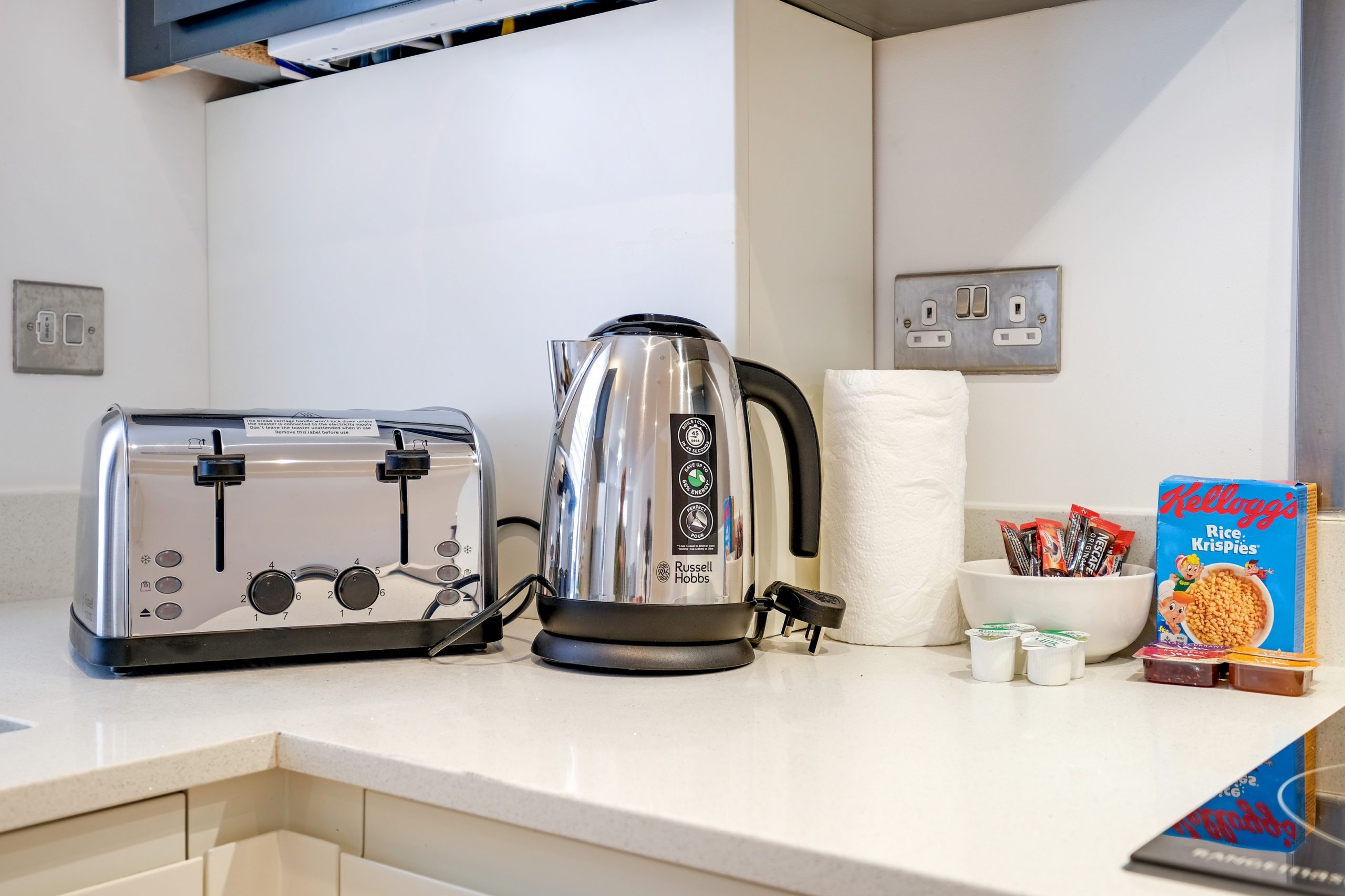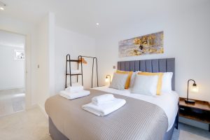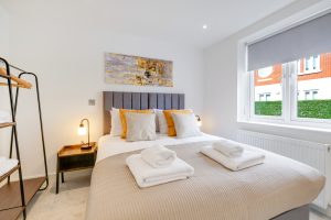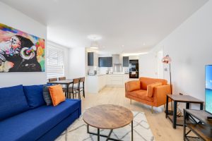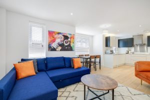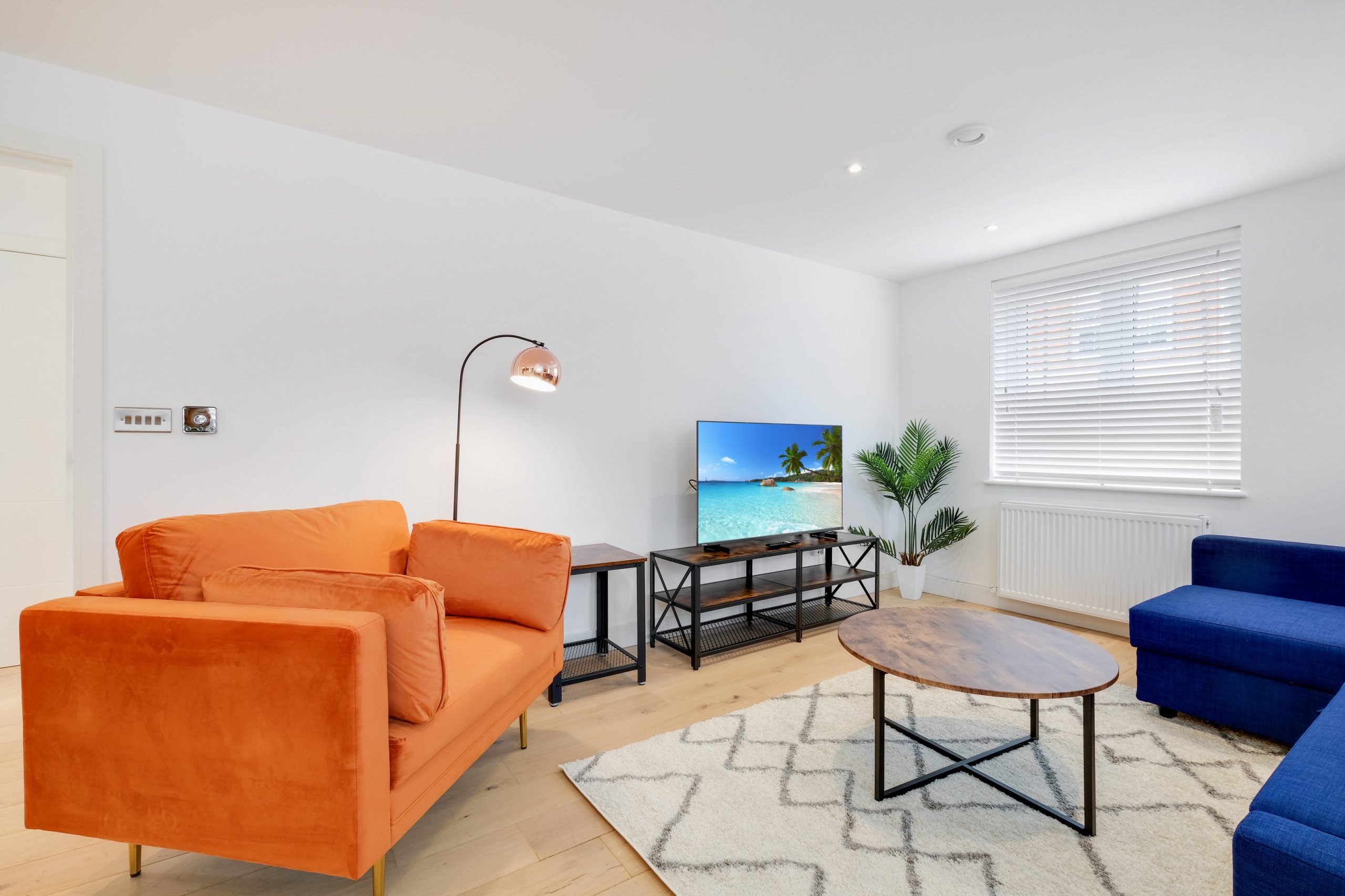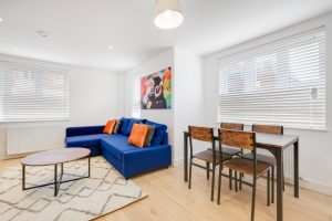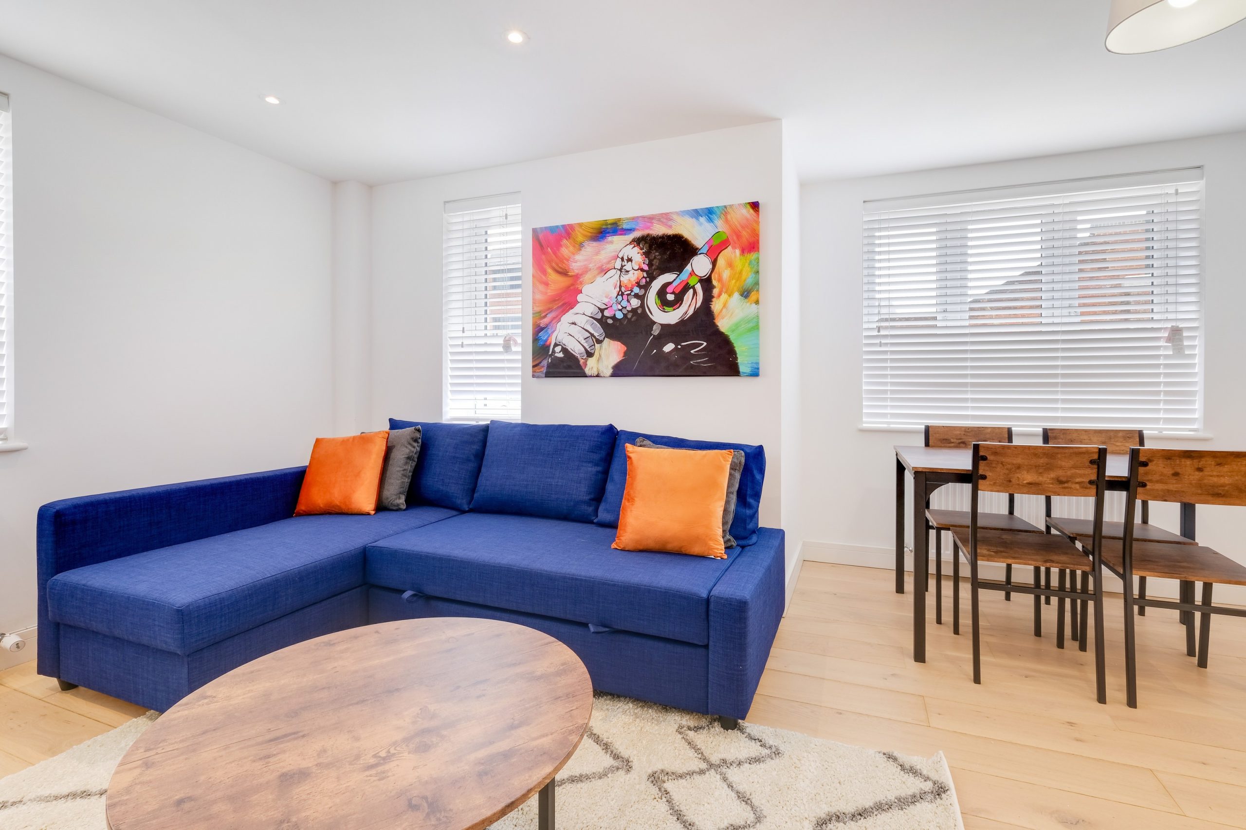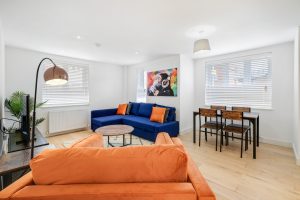Carta House Egham Serviced Apartments 02 is a one bedroom 1 bathroom apartment. Located next door to Egham Station connecting to London waterloo station and very close to the High Street. The Bedroom has a comfortable King size bed. Open plan lounge/dining/kitchen area will guarantee you a pleasant stay. A fully equipped kitchen with Fridge/Freezer, Washer/Dryer, Microwave, Kettle, Toaster etc. Equipped with a Smart TV, Amazon Alexa, fast and free Wi-Fi for you enjoy Netflix and other online services. The location provides easy access to Heathrow, Ascot, Windsor and surrounding areas via the A30, M25, M4 and M3.