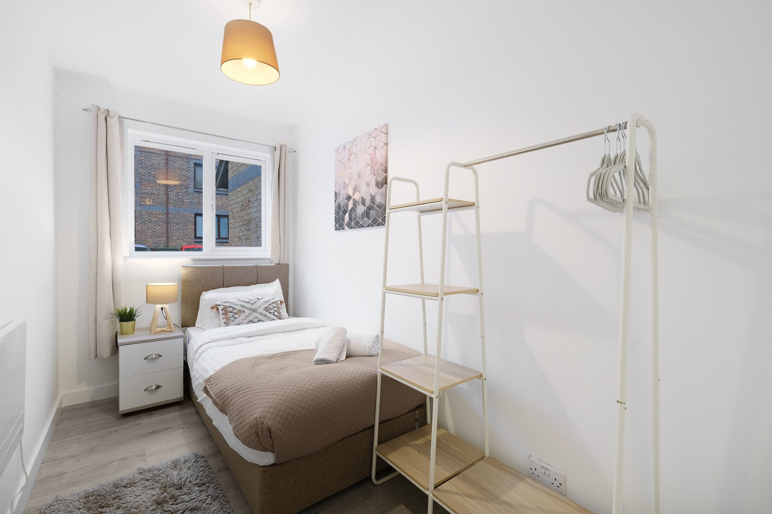 This charming 2-bedroom, 1-bathroom apartment in Transom Square, Tower Hamlets, offers a comfortable living experience for professionals, couples, or small families. The spacious living room features cosy seating and a flat-screen TV, while the modern kitchen is fully equipped with high-quality appliances and a washing machine. The bedrooms offer plenty of storage and the contemporary bathroom has a shower over the bath. Enjoy easy access to local amenities and excellent transport links. High-speed internet included.