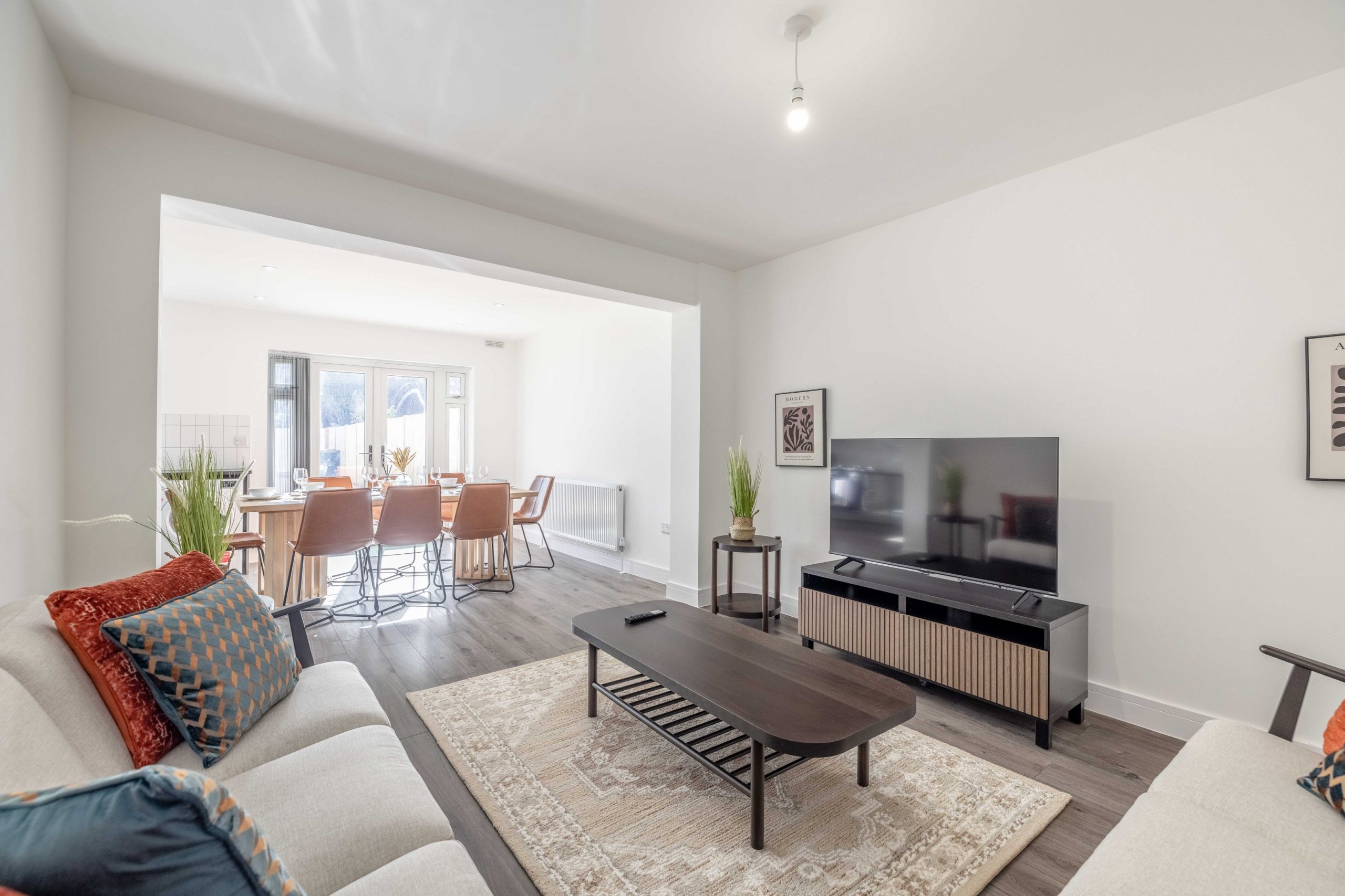 Chic and Comfy 4 Bedroom Stay Serviced House is a recently renovated, spacious property in the heart of Slough. It features 4 cozy bedrooms, 1 bathroom, a fully equipped kitchen, and a comfortable lounge with a Smart TV. The house offers high-speed Wi-Fi, off-street parking, and a private rear garden. With remote check-in, central heating, and eco-conscious amenities, it’s perfect for both business and leisure stays. Enjoy a relaxing atmosphere with all the comforts of home in this well-designed space.
