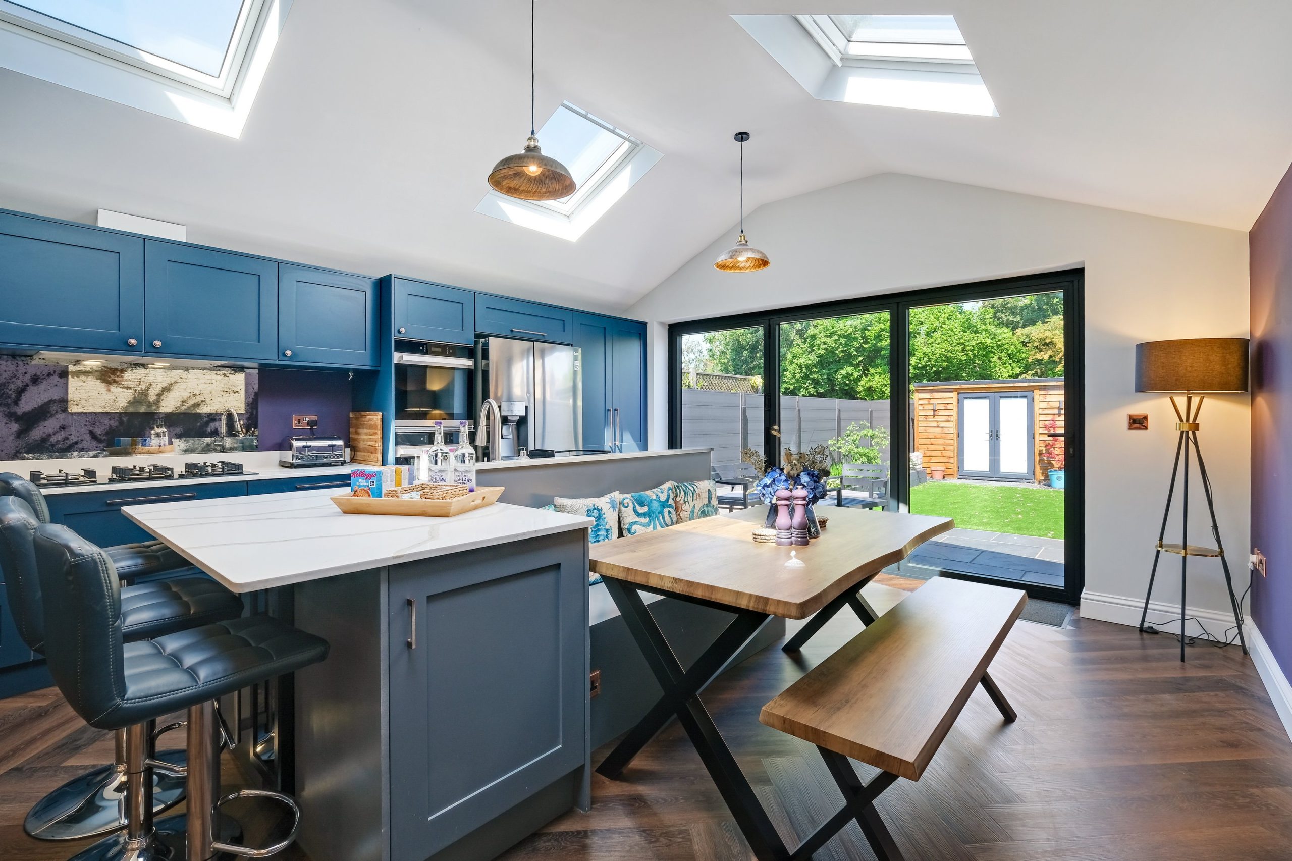 Adjacent to the living room is a bright and airy dining space, ideal for enjoying family meals or hosting dinner with friends. The kitchen is fully equipped with high-quality appliances and sleek finishes, offering everything needed for home-cooked meals or light bites.