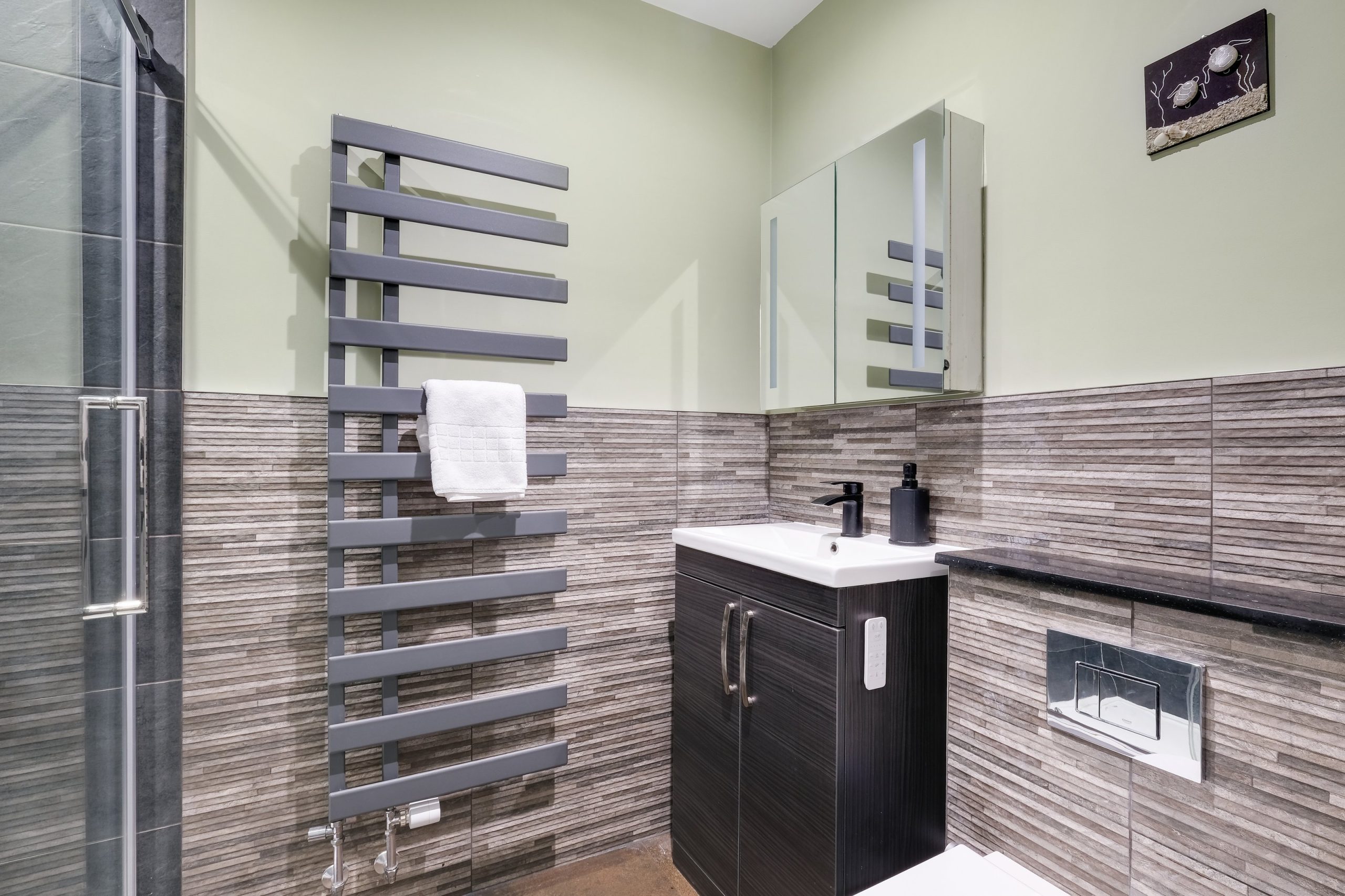 The second bathroom is modern and well-appointed, offering a relaxing space with a clean, stylish design to meet the needs of all residents.