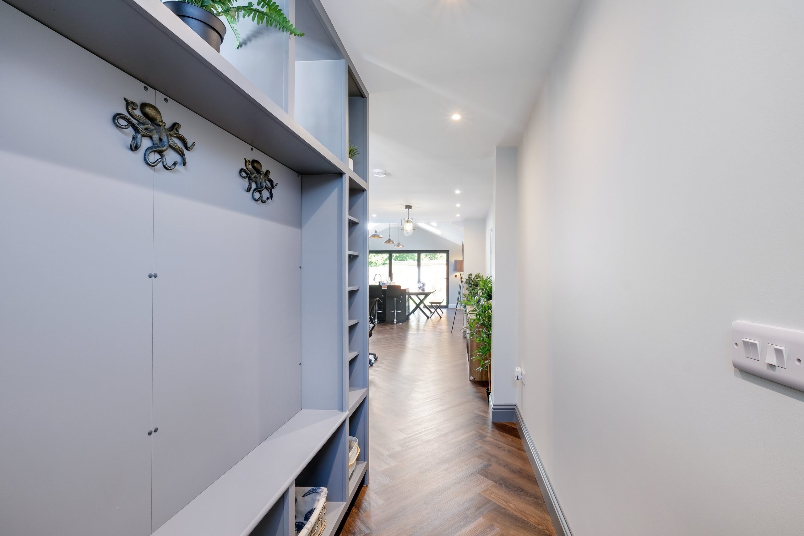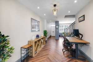 Step inside to discover a warm and stylish interior, beginning with a welcoming entrance hall that opens into a spacious living area—perfect for relaxing after a long day. The living room is tastefully furnished with comfortable seating and modern entertainment options, creating a cosy yet elegant atmosphere for both quiet evenings and social gatherings.