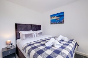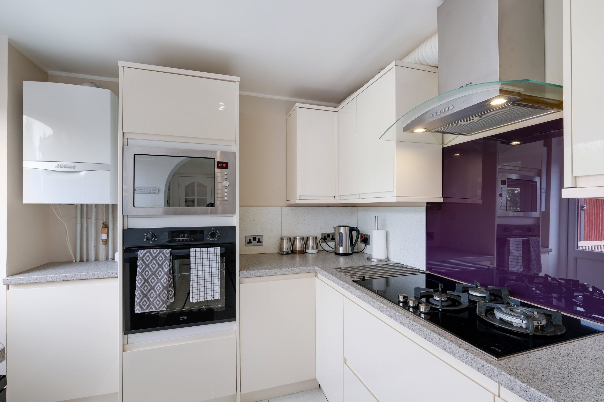 Step inside to find distinct living and kitchen areas, each thoughtfully designed to provide both practicality and comfort. The living room is a cosy haven, featuring comfortable seating and a flat-screen TV, making it the ideal place to relax after a busy day. The kitchen, well-equipped with modern appliances and generous counter space, is perfect for preparing meals—from a quick breakfast to a family dinner.