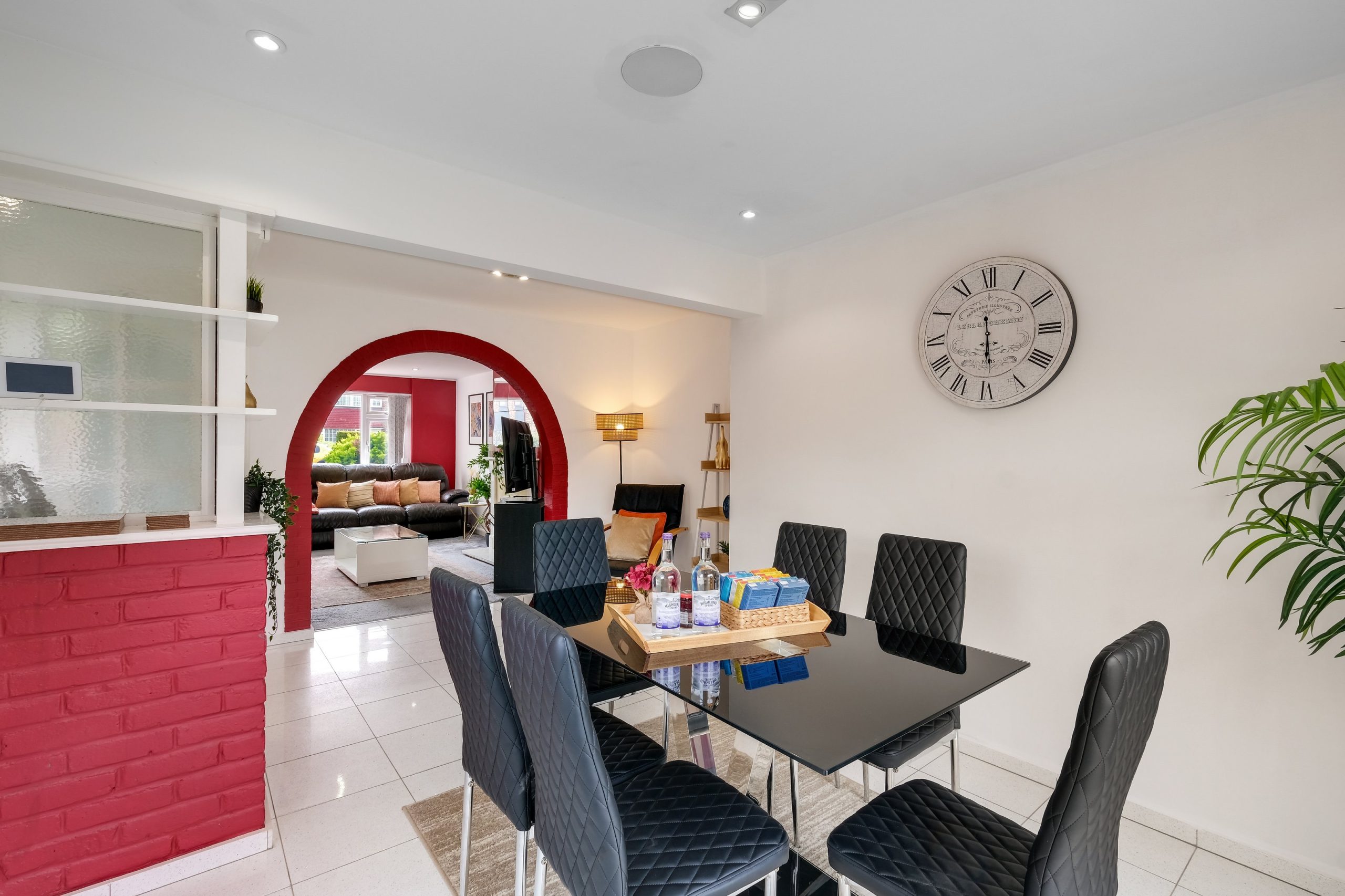 This inviting five-bedroom, two-bathroom home on Ember Rd is perfect for families, groups, or professionals. It features a cozy living room with a flat-screen TV, and a modern, fully-equipped kitchen. Each bedroom offers comfort, with the master having an en-suite. A private garden and off-street parking add to the convenience.