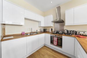 ➞ Living room, has a Flat Screen TV. A dinning table. Kitchen includes, Ceramic Hob, electric Oven, Toaster, Kettle, Microwave.