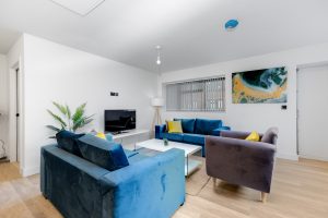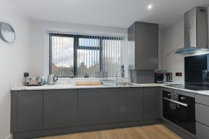 Our modern 3 bedroom Serviced Apartment (sleeps upto 8) is a bright, modern, spacious apartment perfectly situated in Wolverton, Milton Keynes, Free Parking, Free WiF, Communal Entertainment room, 7 mins drive to Milton Keynes Central Station for direct trains to London & the North. The apartment has 1 family bathroom. The kitchen is well equipped and has seating for dining, and the living room has a Smart TV, Amazon Alexa, and free Wi-Fi. The mixture of single and double beds provides a wide range of sleeping options. The fully equipped kitchen/dining room has a sociable ‘heart of the house’ feel to it, while the living room has Smart TV, Amazon Alexa, and fast and free WiFi, which is of course available throughout the apartment. The kitchen is equipped to a high standard, so if you are just sorting out breakfast or if you fancy cooking dinner yourself… it includes the basics like electric kettle, toaster, microwave, fridge, plus a decent hob, electric fan oven, and it comes fully equipped with kitchenware, utensils, pots and pans, cutlery, crockery and glasses as you expect. This apartment has allocated off-street parking with no height restriction. Bedroom 1 has a super king size bed, bedside tables, wardrobe, and an accent chair to relax in. Bedroom 2 has 2x Zip king size bed, bedside tables, Wardrobe and an accent chair. Bedroom 3 also has 2x Zip king size bed, bedside tables, Wardrobe and an accent chair. There is a family bathroom with complimentary toiletries which include soap/hand wash, shampoo and shower body wash. Of course there are ample towels included. The whole apartment is well equipped with just the right mix of quality, high standards and functionality. It is a comfortable and pleasing living space, just right for your visit whether it is just a few nights or longer, as a family or a group of friends or colleagues or Contractors and this is an excellent base for those visiting or working around the Milton Keynes area. Bletchley Park is 8.1 miles from the apartment, while Woburn Abbey is 14.3 miles from the property. The nearest airport is London Luton Airport, 29.2 miles from Milton Keynes
