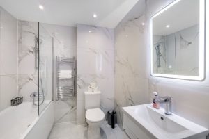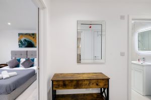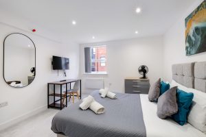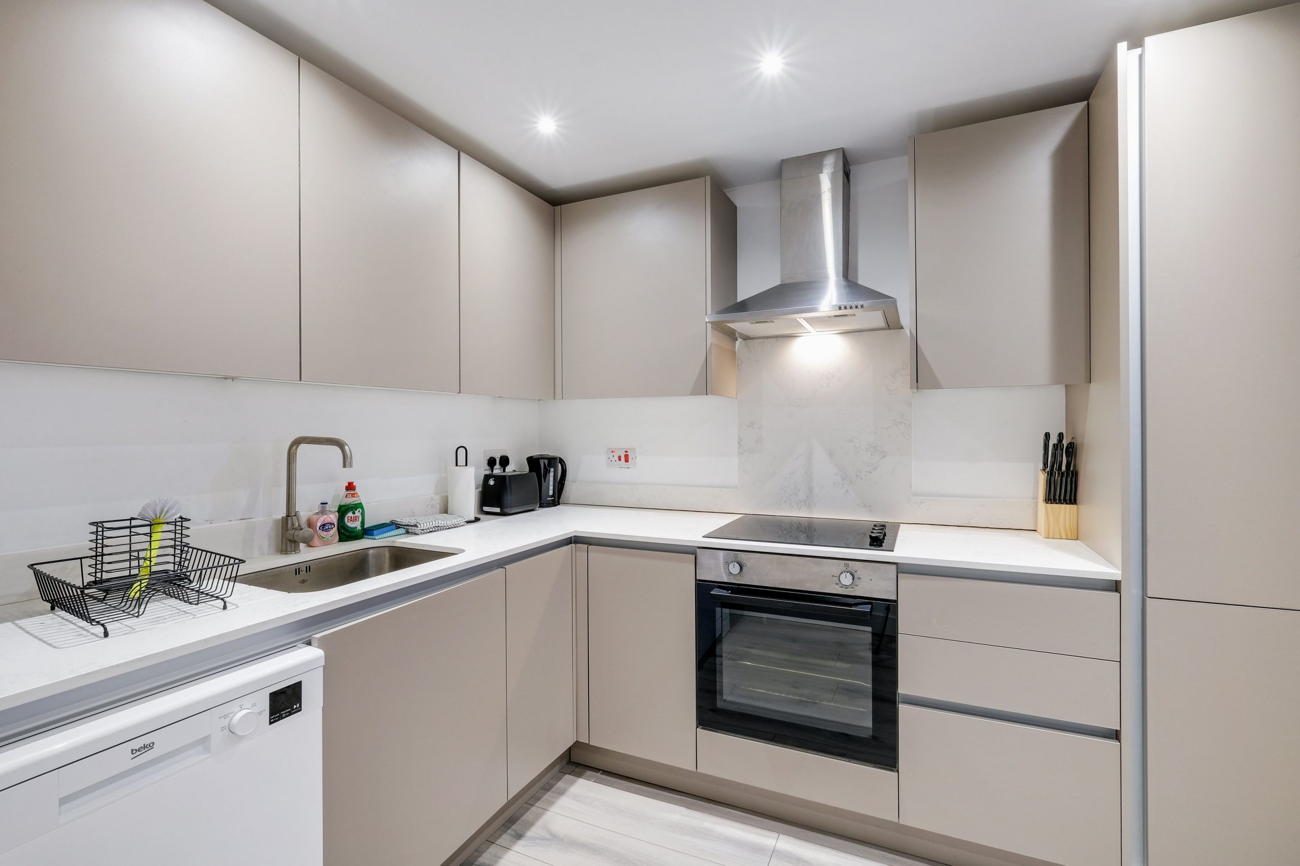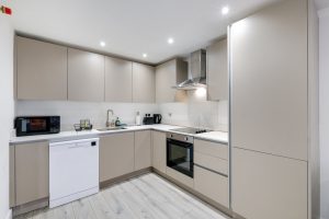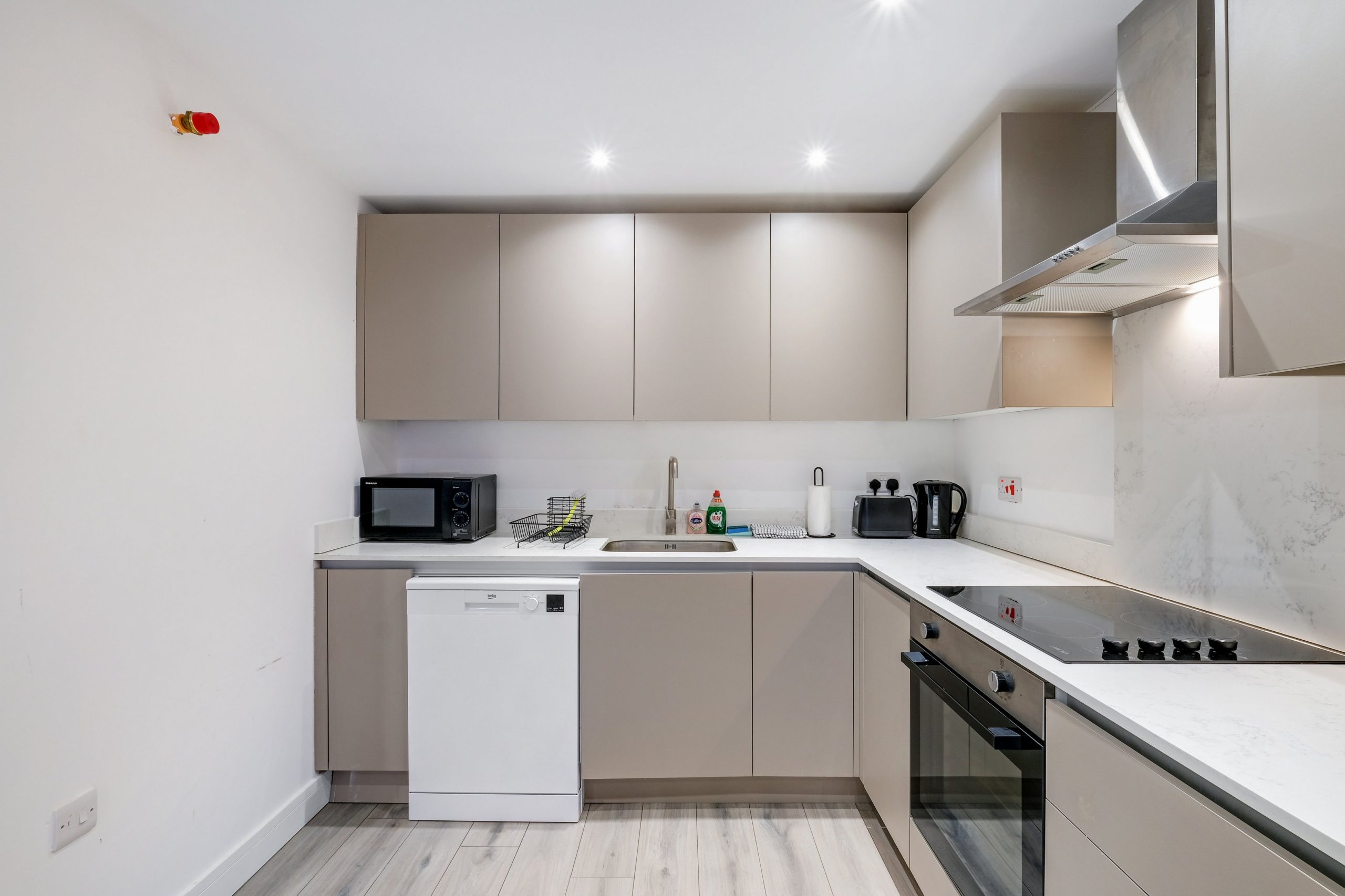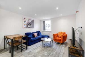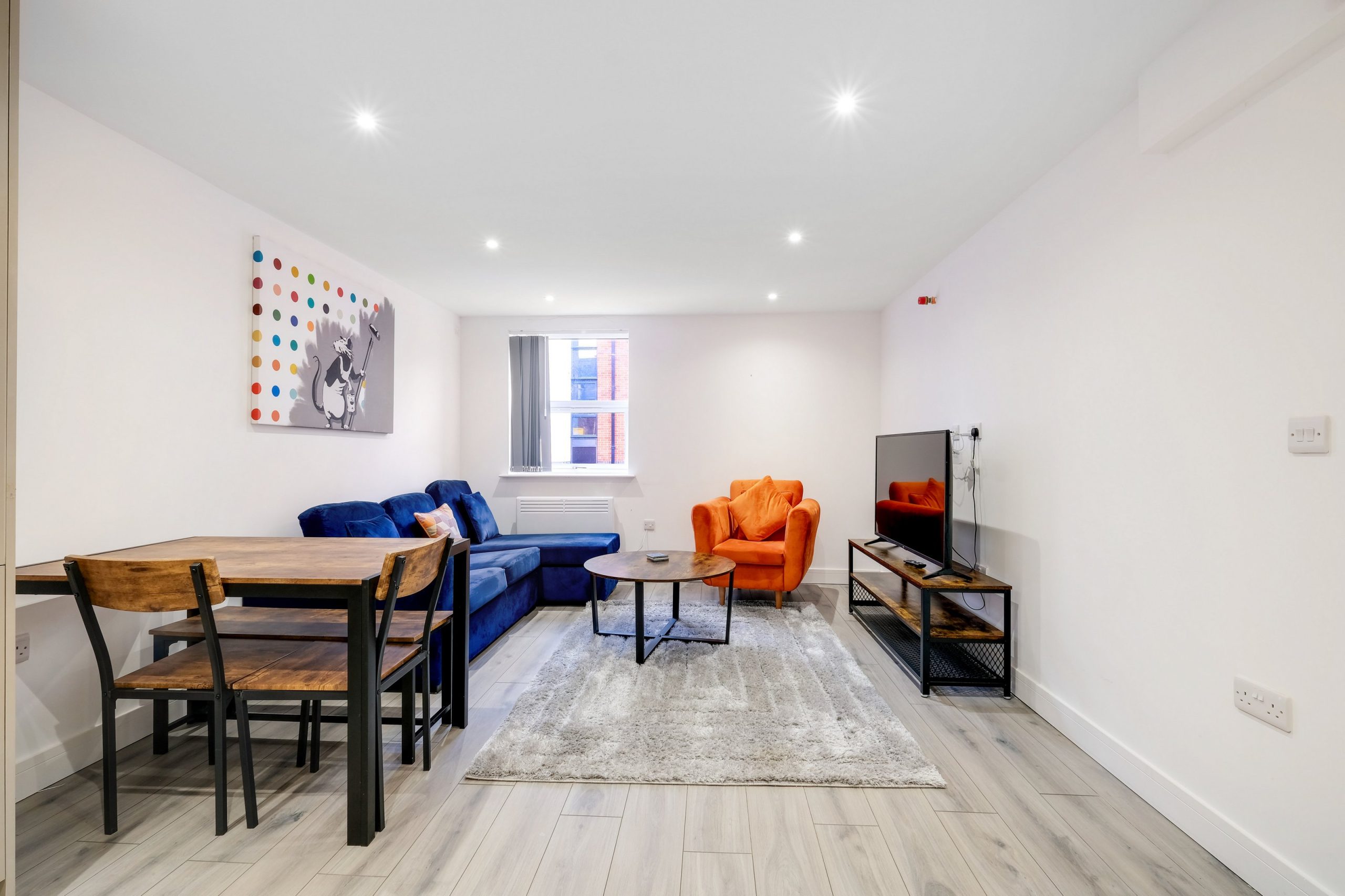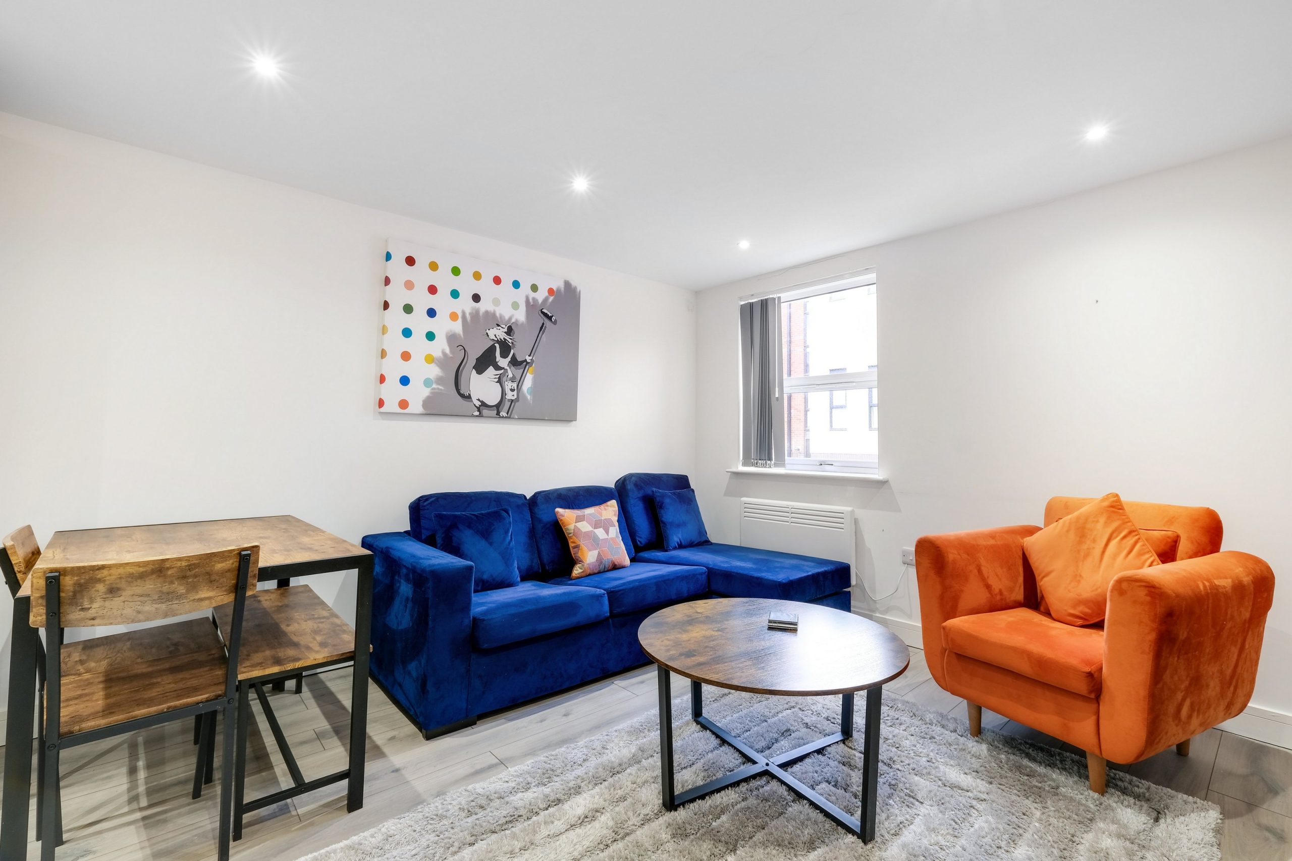 New luxury serviced apartments in the heart of Camberley. Designed for comfortable short-term rental. These 1 bedroom 1 bathroom apartments are perfect for those who desire an town centre stay combined with the finest modern amenities and attention to detail. Situated on Camberley High Street, the apartments provide easy access to a range of amenities, including shops, local pubs, and some of your favorite highstreets brands. The roof garden comes with furniture for relaxing on a nice day.