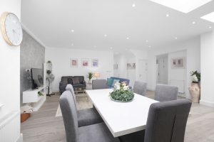 Step inside to discover a bright and spacious living area, thoughtfully designed with cosy furnishings and a smart entertainment setup—perfect for unwinding after a busy day or enjoying a movie night in. The open-plan layout seamlessly connects to the dining area, creating a warm and welcoming space for shared meals and conversations.