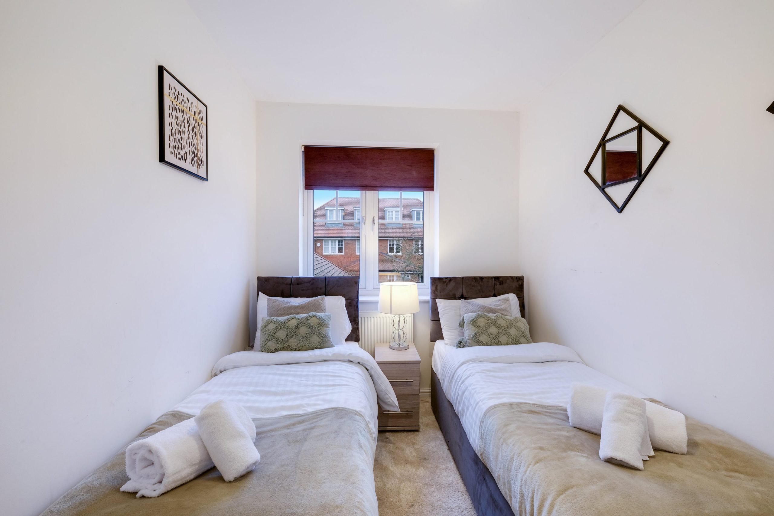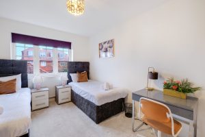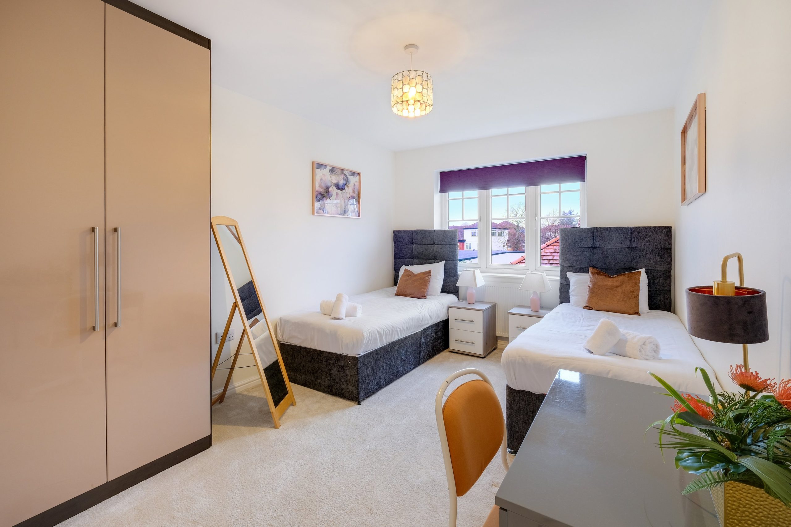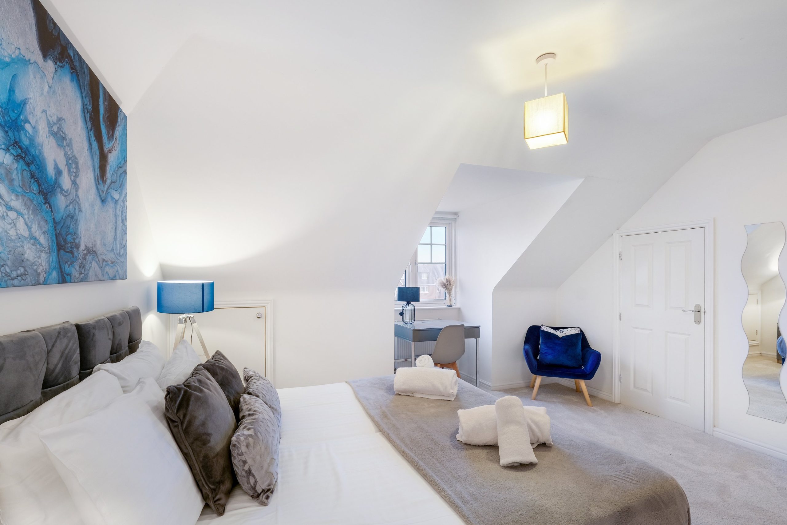 Welcome to this exquisite 4-bedroom, 3.5-bathroom home in Maidenhead, where every detail has been carefully designed to provide a comfortable stay. Perfect for families, corporate travellers, or groups, this property offers an inviting blend of elegance and modern convenience, ideal for short-term stays. Step inside and be greeted by a bright and welcoming hallway that flows seamlessly into the spacious living area. Illuminated by natural light pouring through large windows, the living space features plush seating. The perfect setting to unwind after a day of exploration or work. Each of the four beautifully appointed bedrooms is designed to be a haven of tranquillity. The master suite boasts a king-sized bed styled with premium linens and tasteful décor. The additional bedrooms are equally comfortable, with stylish furnishings, ample storage, and cosy beds to ensure a restful night’s sleep. The home offers 3.5 well-equipped bathrooms, ensuring plenty of space and convenience for all guests. The heart of the home is the fully equipped modern kitchen, complete with high-end appliances and everything needed to prepare meals with ease. The separate dining area provides the perfect space to gather for shared meals or casual conversations. Outside, you’ll find a private, beautifully landscaped garden. Whether you’re sipping your morning coffee or simply soaking in the peaceful ambiance, the outdoor space is a delightful retreat from the bustle of everyday life. Additional amenities include off-street parking and high-speed internet ensuring both convenience and entertainment throughout your stay. This home’s location in Maidenhead offers easy access to vib-rant local amenities, scenic attractions like the Thames Path and Windsor Castle. Excellent transport links make it easy to explore nearby towns or venture into London for the day. Whether you’re visiting for business or leisure, this Maidenhead retreat promises an unforgettable experience, combining contemporary elegance with the warmth of a true home away from home.