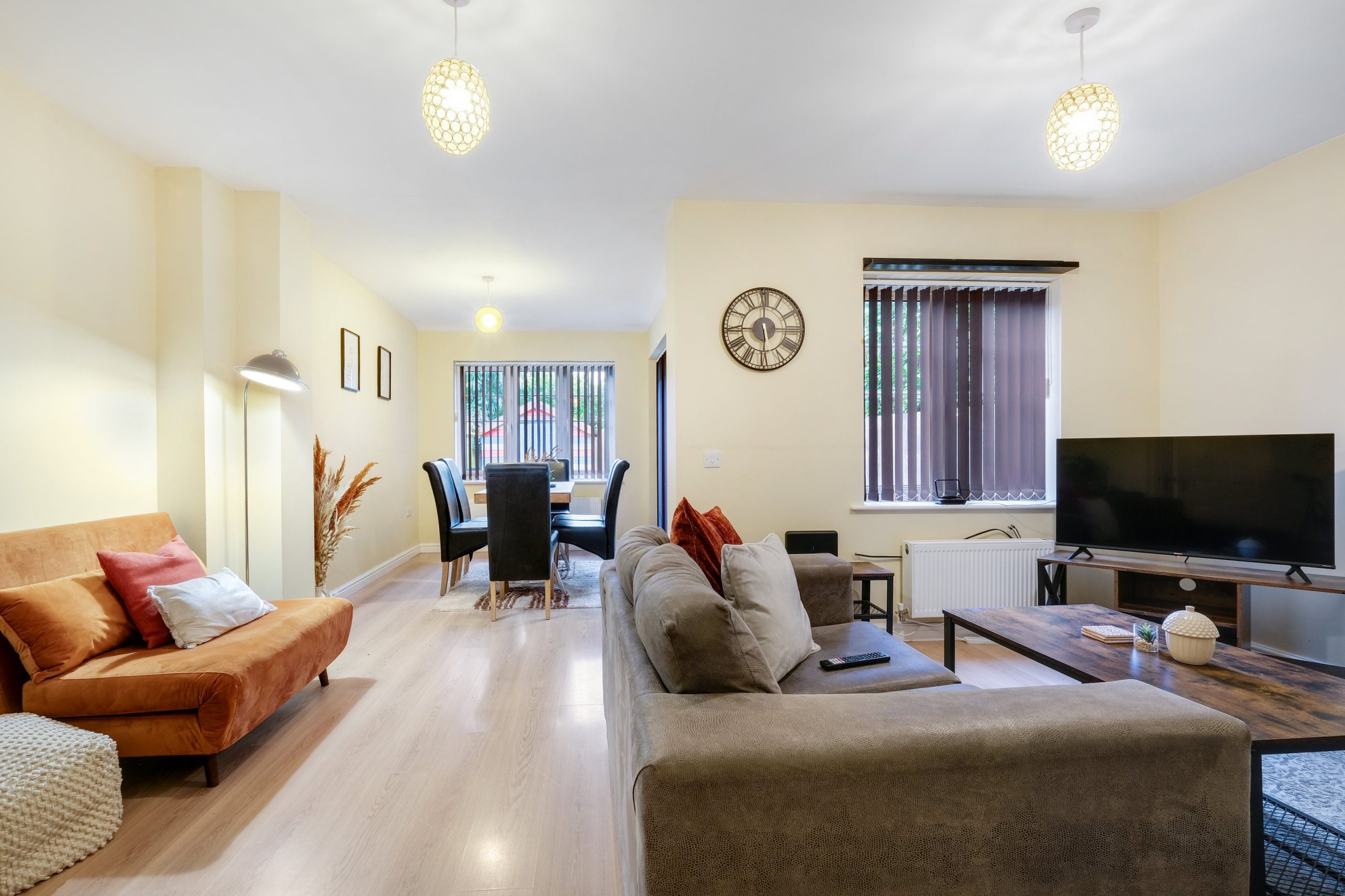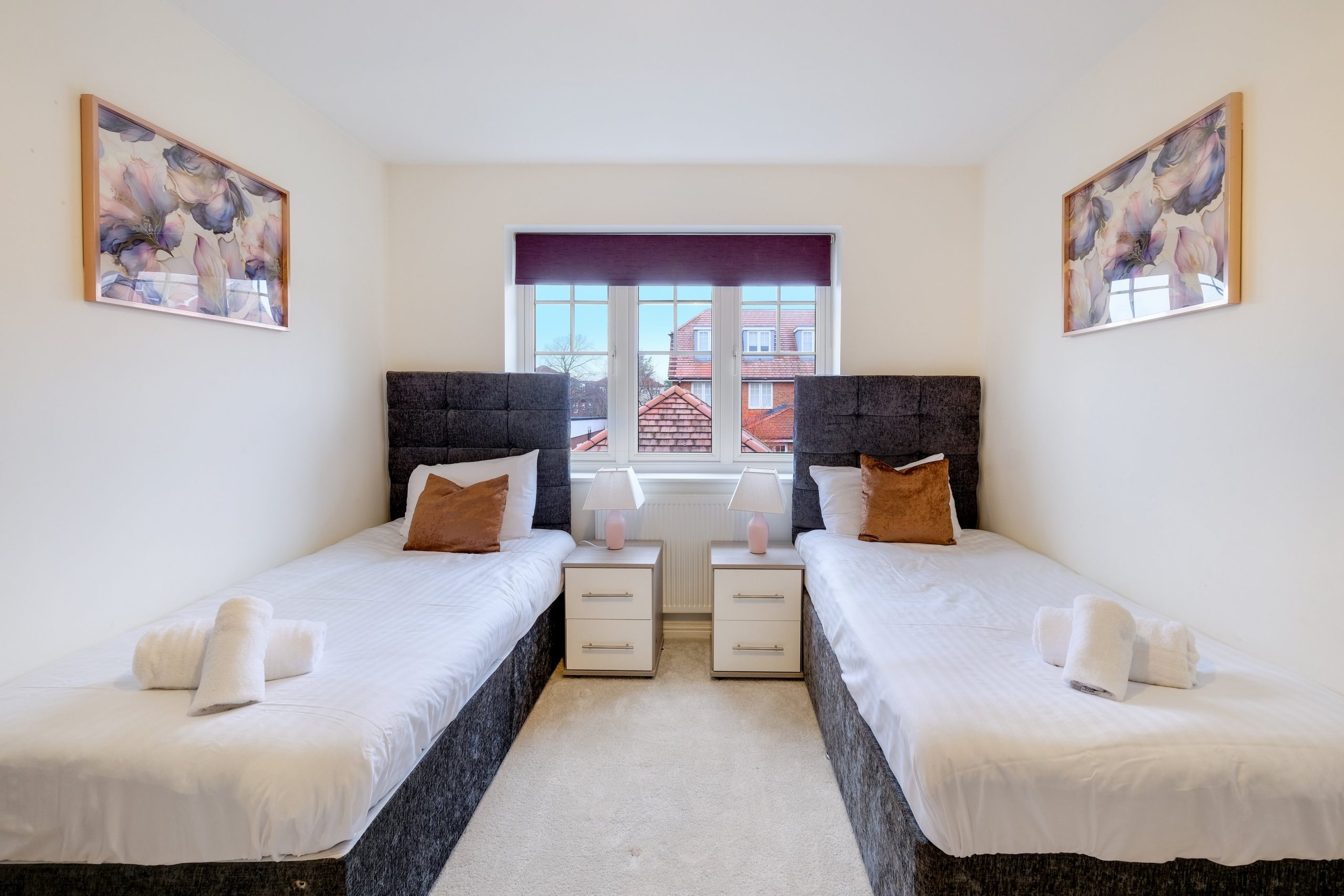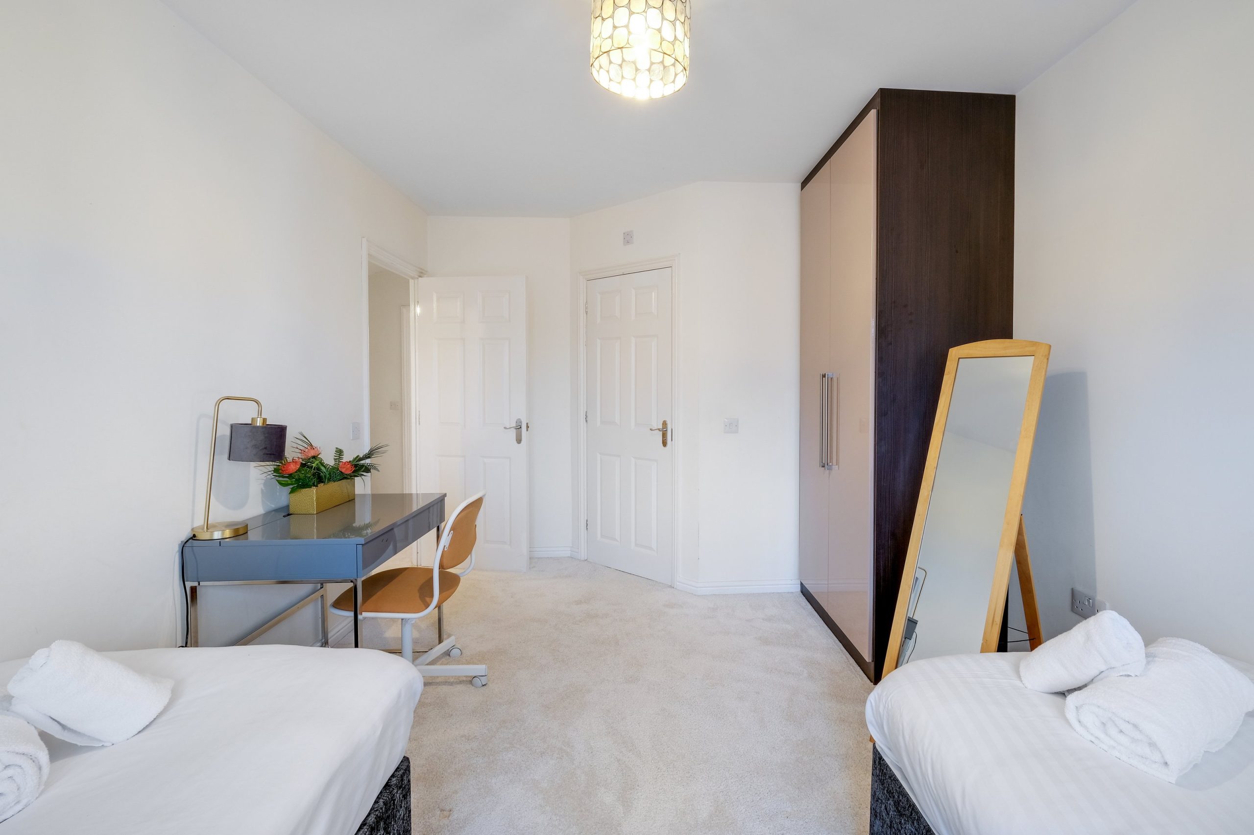 Welcome to this exquisite 4-bedroom, 3.5-bathroom home in Maidenhead, where every detail has been carefully designed to provide a comfortable stay. Perfect for families, corporate travellers, or groups, this property offers an inviting blend of elegance and modern convenience, ideal for short-term stays. Step inside and be greeted by a bright and welcoming hallway that flows seamlessly into the spacious living area. Illuminated by natural light pouring through large windows, the living space features plush seating. The perfect setting to unwind after a day of exploration or work. Each of the four beautifully appointed bedrooms is designed to be a haven of tranquillity. The master suite boasts a king-sized bed styled with premium linens and tasteful décor. The additional bedrooms are equally comfortable, with stylish furnishings, ample storage, and cosy beds to ensure a restful night’s sleep. The home offers 3.5 well-equipped bathrooms, ensuring plenty of space and convenience for all guests. The heart of the home is the fully equipped modern kitchen, complete with high-end appliances and everything needed to prepare meals with ease. The separate dining area provides the perfect space to gather for shared meals or casual conversations. Outside, you’ll find a private, beautifully landscaped garden. Whether you’re sipping your morning coffee or simply soaking in the peaceful ambiance, the outdoor space is a delightful retreat from the bustle of everyday life. Additional amenities include off-street parking and high-speed internet ensuring both convenience and entertainment throughout your stay. This home’s location in Maidenhead offers easy access to vib-rant local amenities, scenic attractions like the Thames Path and Windsor Castle. Excellent transport links make it easy to explore nearby towns or venture into London for the day. Whether you’re visiting for business or leisure, this Maidenhead retreat promises an unforgettable experience, combining contemporary elegance with the warmth of a true home away from home.