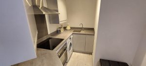 Upon entering the apartment, you’re greeted by a warm and inviting living space. The open-concept layout seamlessly connects the living area with the kitchen. The living area is thoughtfully designed with comfortable seating and stylish décor., providing the perfect space to relax and unwind after a long day. The well-appointed kitchen, features modern appliances, ample storage, and sleek countertop.