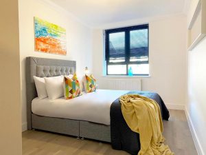 In the heart of the historic town centre of Rochester, above the eastern bank of the River Medway and not far from the M2 motorway, the co-located town of Chatham, and close to the Historic Dockyards attraction. The apartment lies close to the southern end of the pedestrianized High Street with many shops, restaurants and bars and leading northwards up to Rochester Cathedral and Rochester Castle.Modern Stylish 2 Bedroom 2 Bath Apartments 01 by 360Stays – Rochester