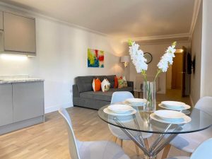 Situated in the heart of the Rochester town centre, this apartment’s just right for family visitors, contractors and business travelers. Modern and stylish 2 bedroom, 2 bathroom apartment with open plan lounge/diner and kitchen. The apartment has comfortable king size beds, well equipped kitchens, dining table and chairs. Sofa bed provides sleeping for an additional guest if required.