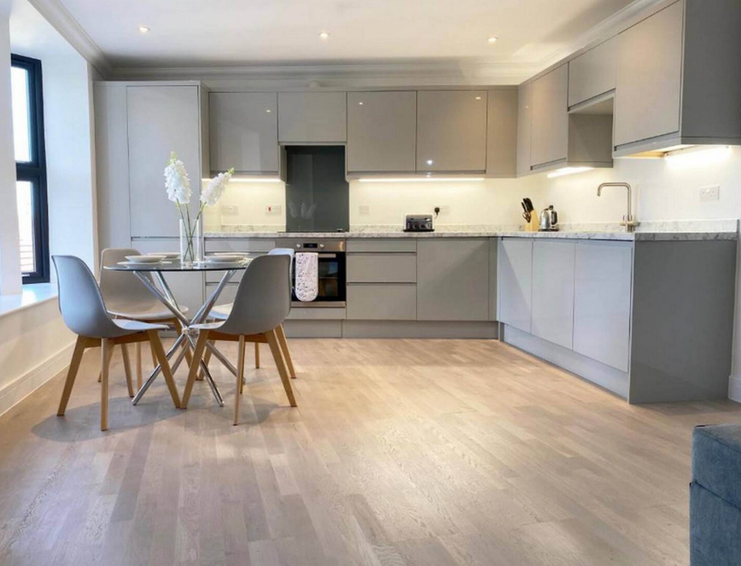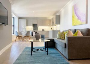 Situated in the heart of the Rochester town centre, this apartment’s just right for family visitors, contractors and business travelers. Modern and stylish 2 bedroom, 2 bathroom apartment with open plan lounge/diner and kitchen. The apartment has comfortable king size beds, well equipped kitchens, dining table and chairs. Sofa bed provides sleeping for an additional guest if required.