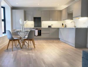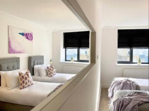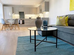 In the heart of the historic town centre of Rochester, above the eastern bank of the River Medway and not far from the M2 motorway, the co-located town of Chatham, and close to the Historic Dockyards attraction. The apartment lies close to the southern end of the pedestrianized High Street with many shops, restaurants and bars and leading northwards up to Rochester Cathedral and Rochester Castle.Modern Stylish 2 Bedroom 2 Bath Apartments 01 by 360Stays – Rochester
