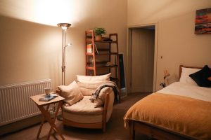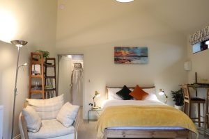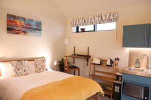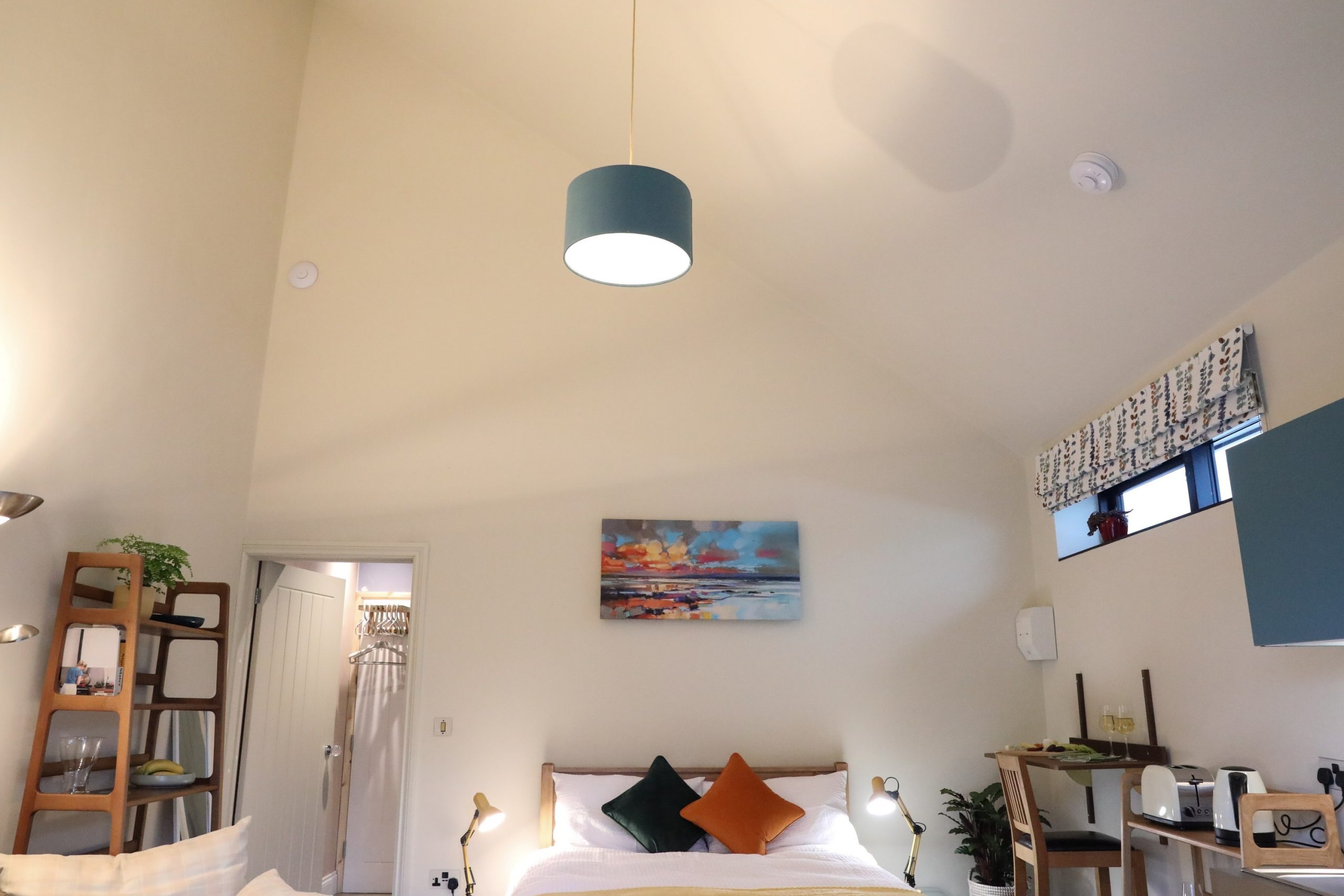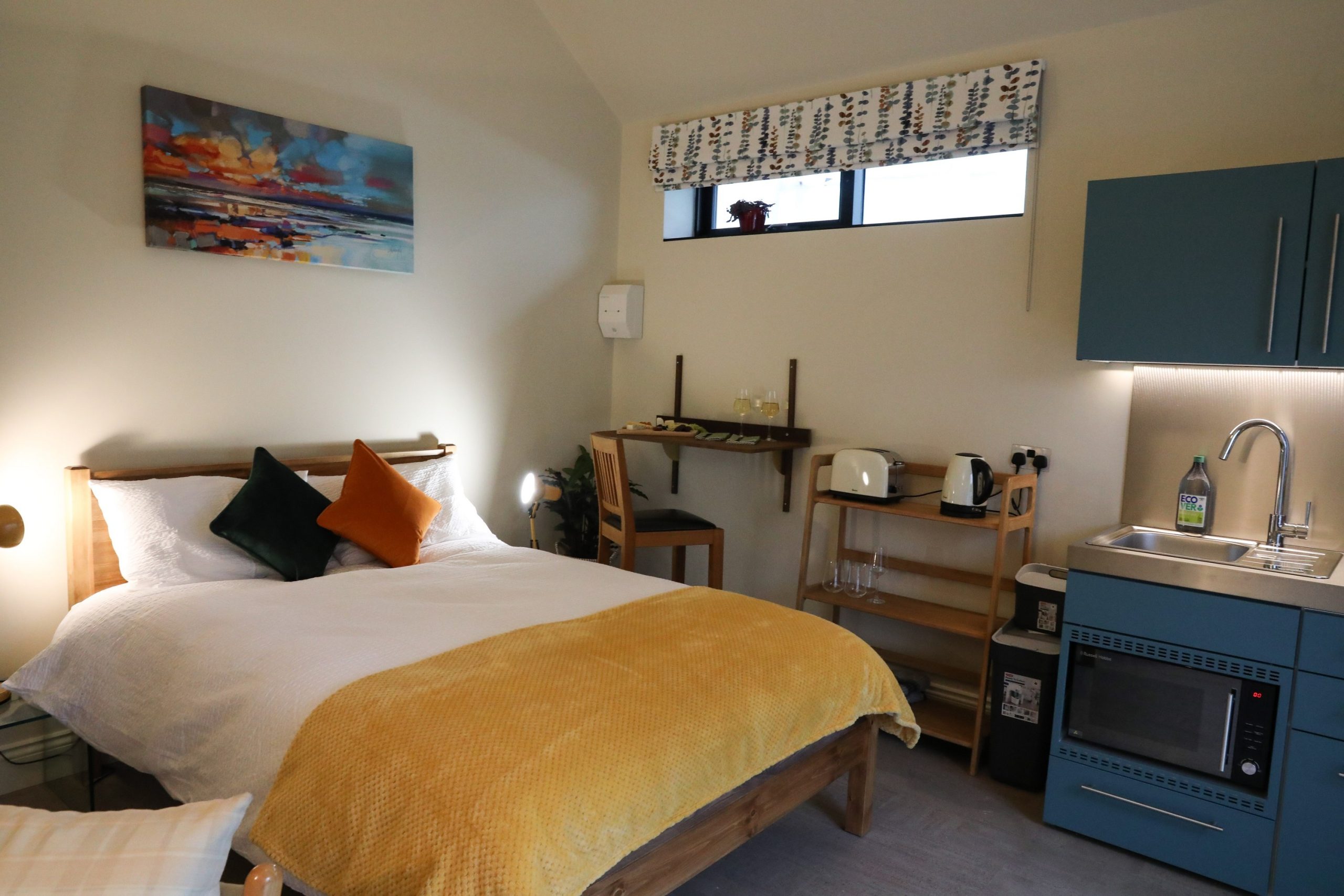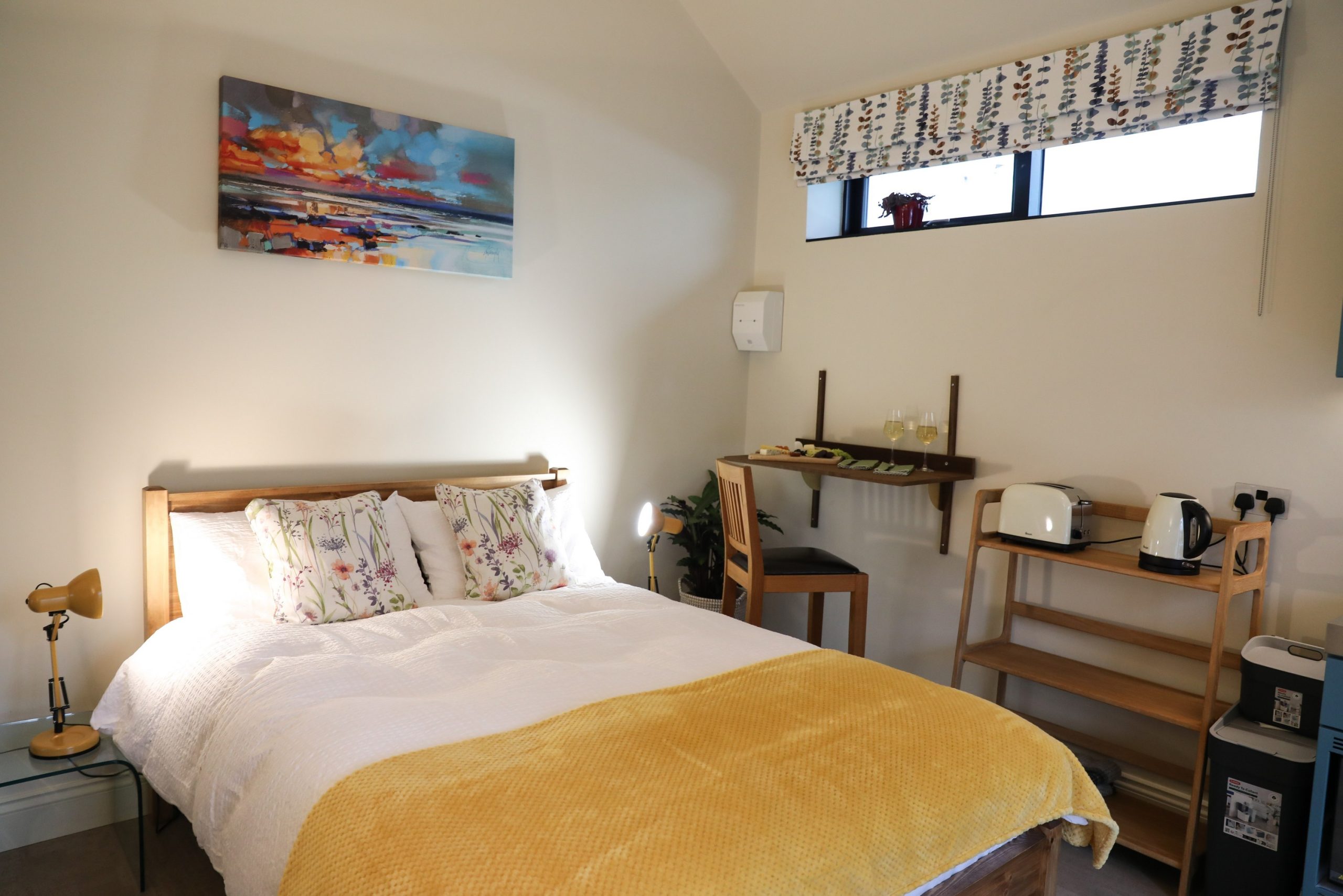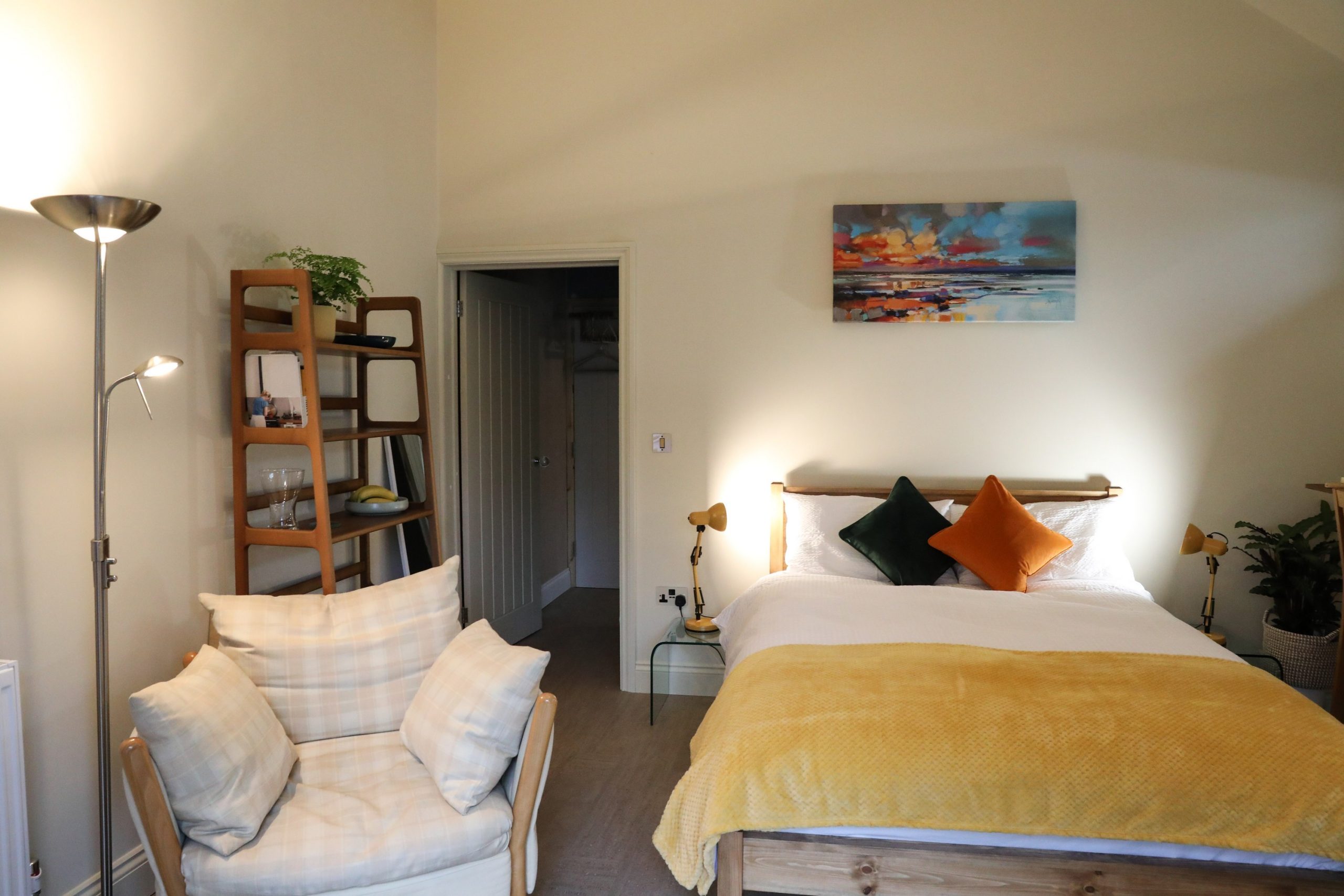 Newly refurbished to a high standard combining fresh pastels with contrasting warm vivid tones to create a relaxing, unique space that is equally cosy. Having been lovingly finished, with warm cork flooring, black-out curtains/blinds, a comfy double bed with modern bedside lights and USB-C lightning charge ports.