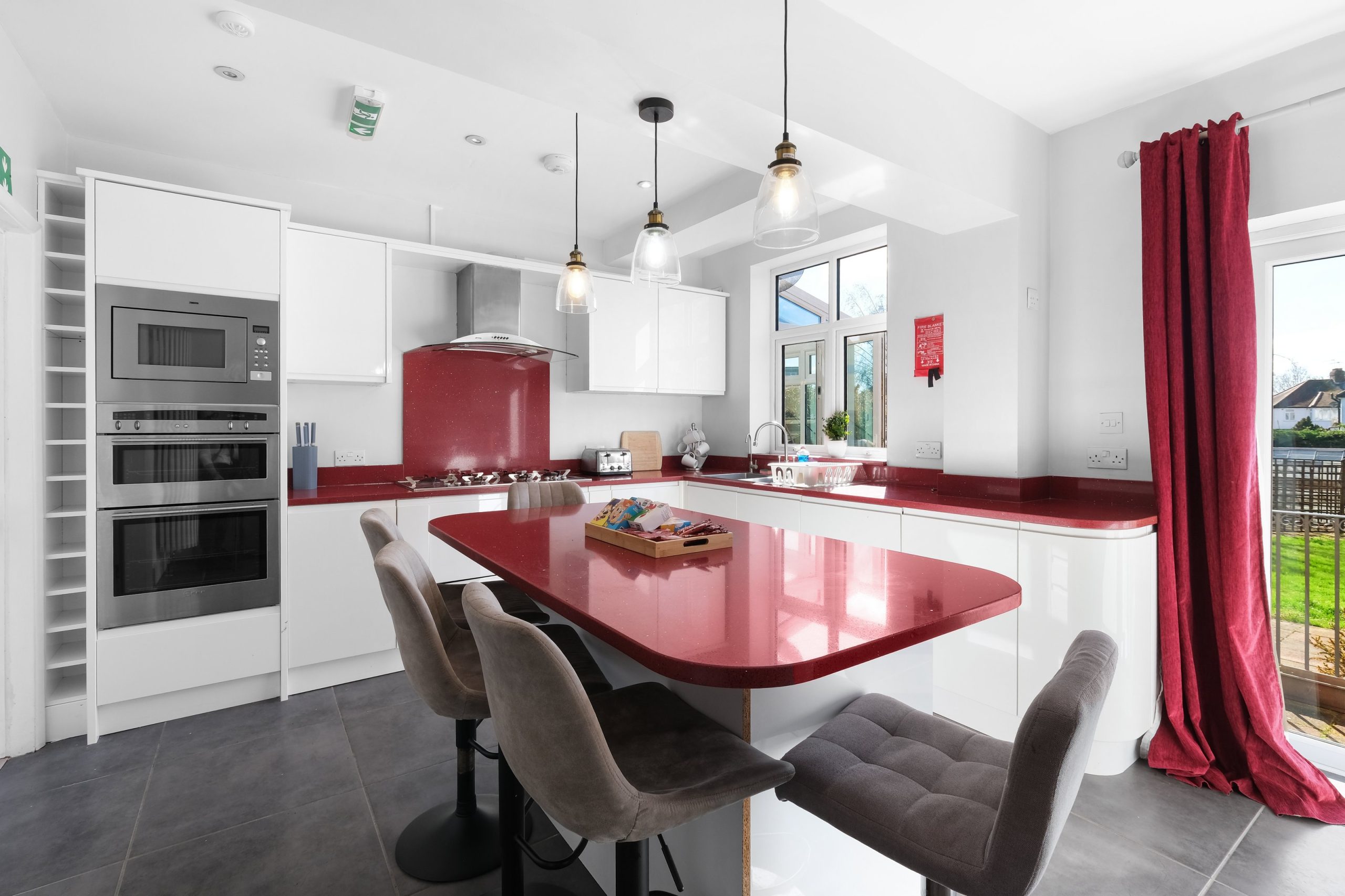 This generous five-bedroom semi-detached home in Harrow is ideal for large families, groups or professionals needing plenty of space. Set across two floors with a conservatory and a large private rear garden, the property features a spectacular chef’s kitchen with a bold red island seating five, a separate dining room and two private driveway spaces. Superfast WiFi and self check-in are included throughout.