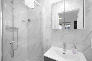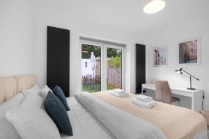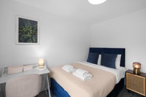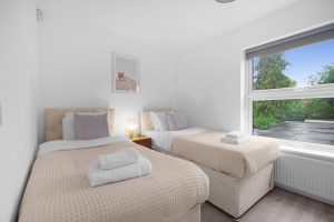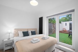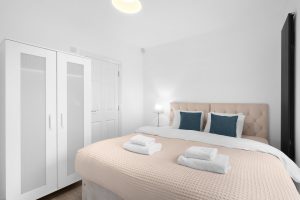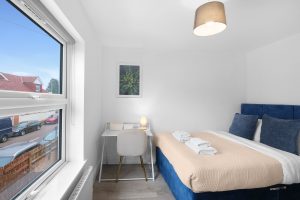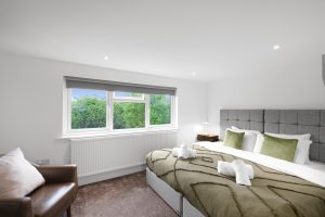 The home features four generously sized bedrooms, each tastefully decorated to provide a peaceful retreat. The master bedroom offers a king-sized bed and an en-suite bathroom, complete with modern fixtures and a walk-in shower, ensuring a private and luxurious experience. The remaining bedrooms are equally inviting, designed with soft lighting, quality bedding, and ample storage to make every guest feel at home.