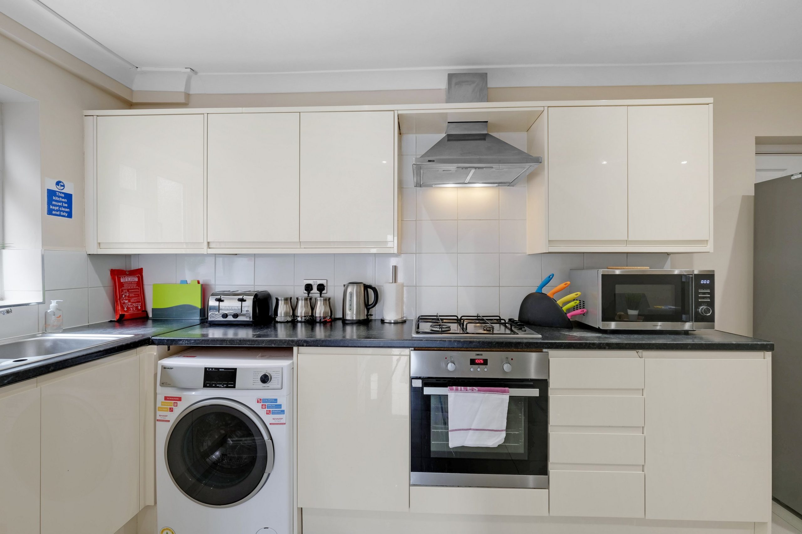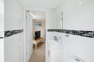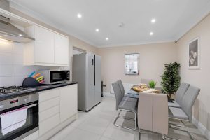 Inside, you’ll find thoughtfully designed living spaces that blend style and practicality. The cosy lounge provides a warm and inviting atmosphere, complete with comfortable seating and a flat-screen TV—ideal for unwinding after a busy day. The modern kitchen is fully equipped with all the necessary appliances and generous worktop space, making home-cooked meals a breeze.