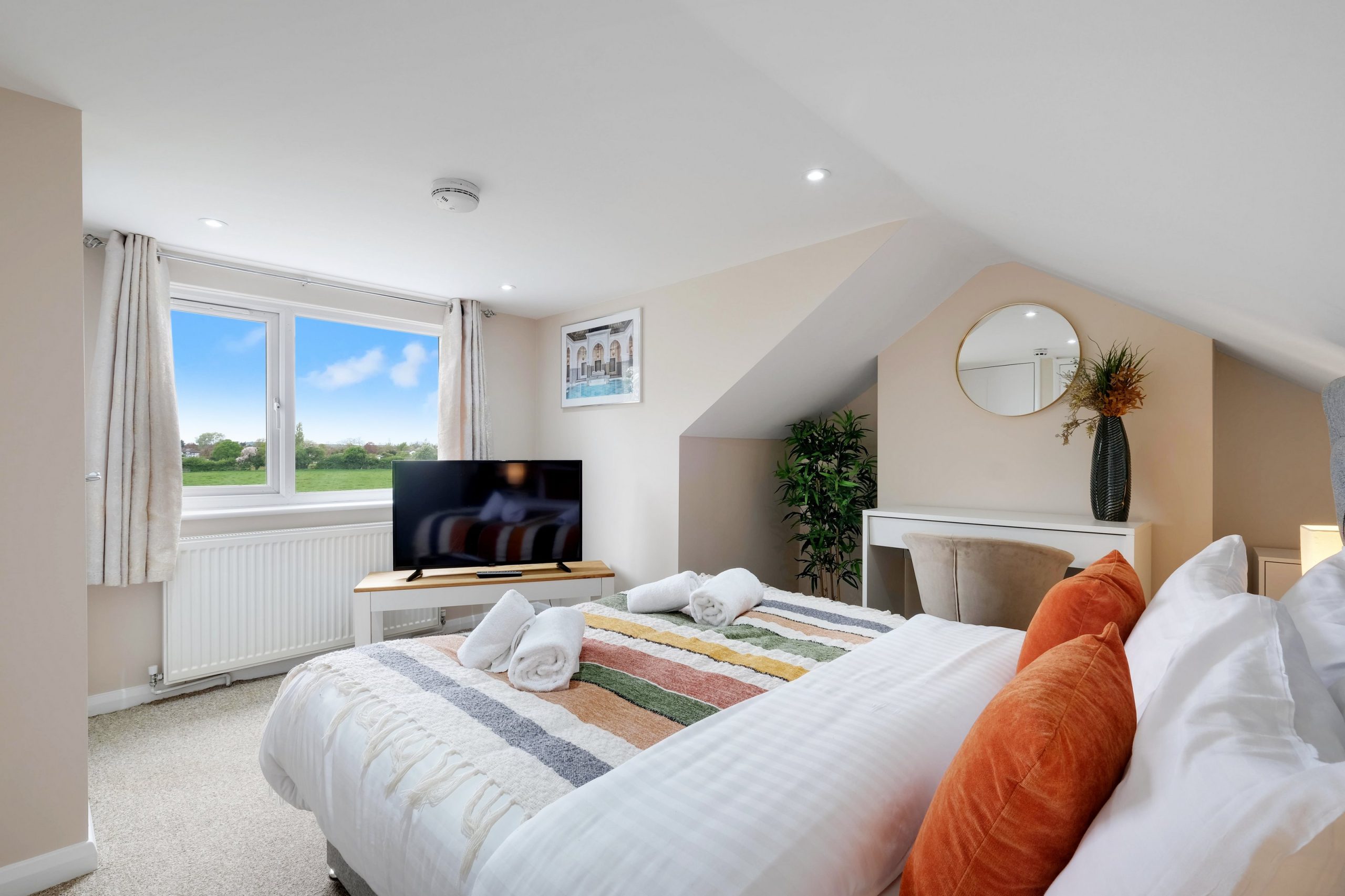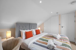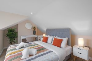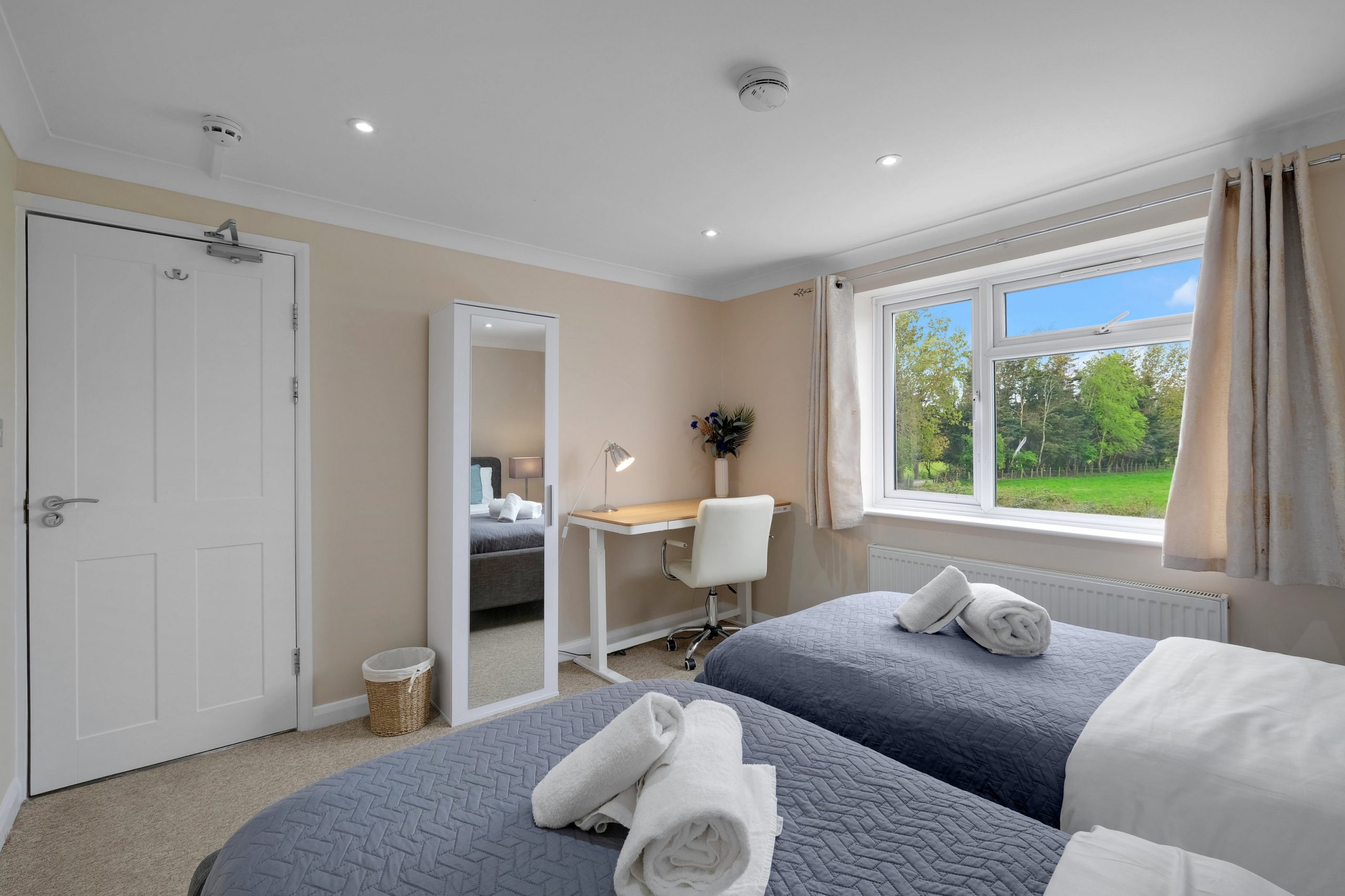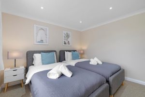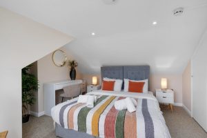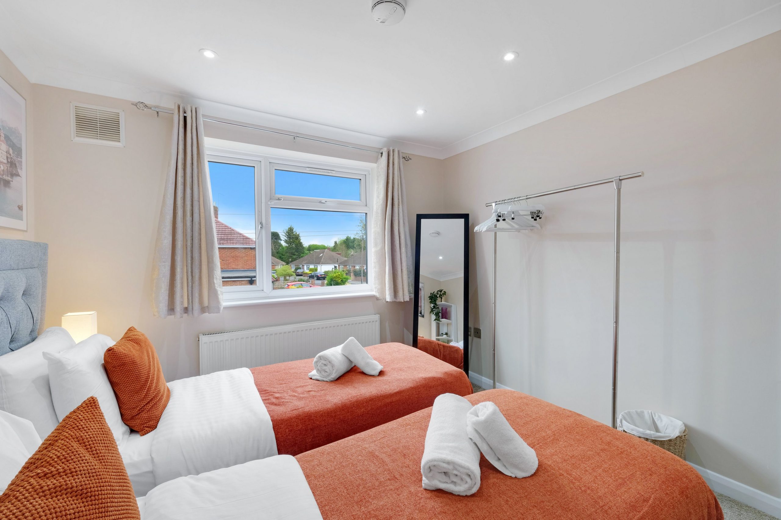 Each of the four bedrooms is tastefully furnished with soft bedding and ample storage, ensuring a restful night’s sleep for everyone. Two well-appointed bathrooms—one en-suite and one shared—offer modern fixtures and plenty of space, making daily routines easy and stress-free. Driveway parking is available, making it convenient for guests travelling by car.