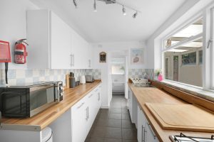 Outside, guests can enjoy a private, enclosed rear garden—ideal for relaxing outdoors. While there is no private driveway, ample on-street parking is available nearby. The property is heated efficiently via a modern gas combi boiler, providing consistent warmth and instant hot water.