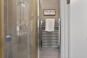 For sleeping, bedroom 1 has a king-size bed plus wardrobes and drawers etc. Bedroom 2 has 2 x singles and also en-suite bathroom with shower. The main bathroom comprises shower over bath with sink and toilet.