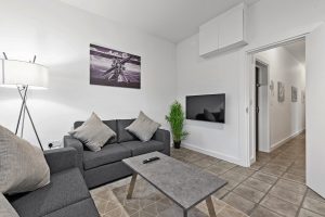 The living room has comfortable seating including 2 sofa beds, plus a dining area with table and chairs. We provide a Smart TV with a very fast internet connection (and wifi) so you can log into your Netflix or other services..